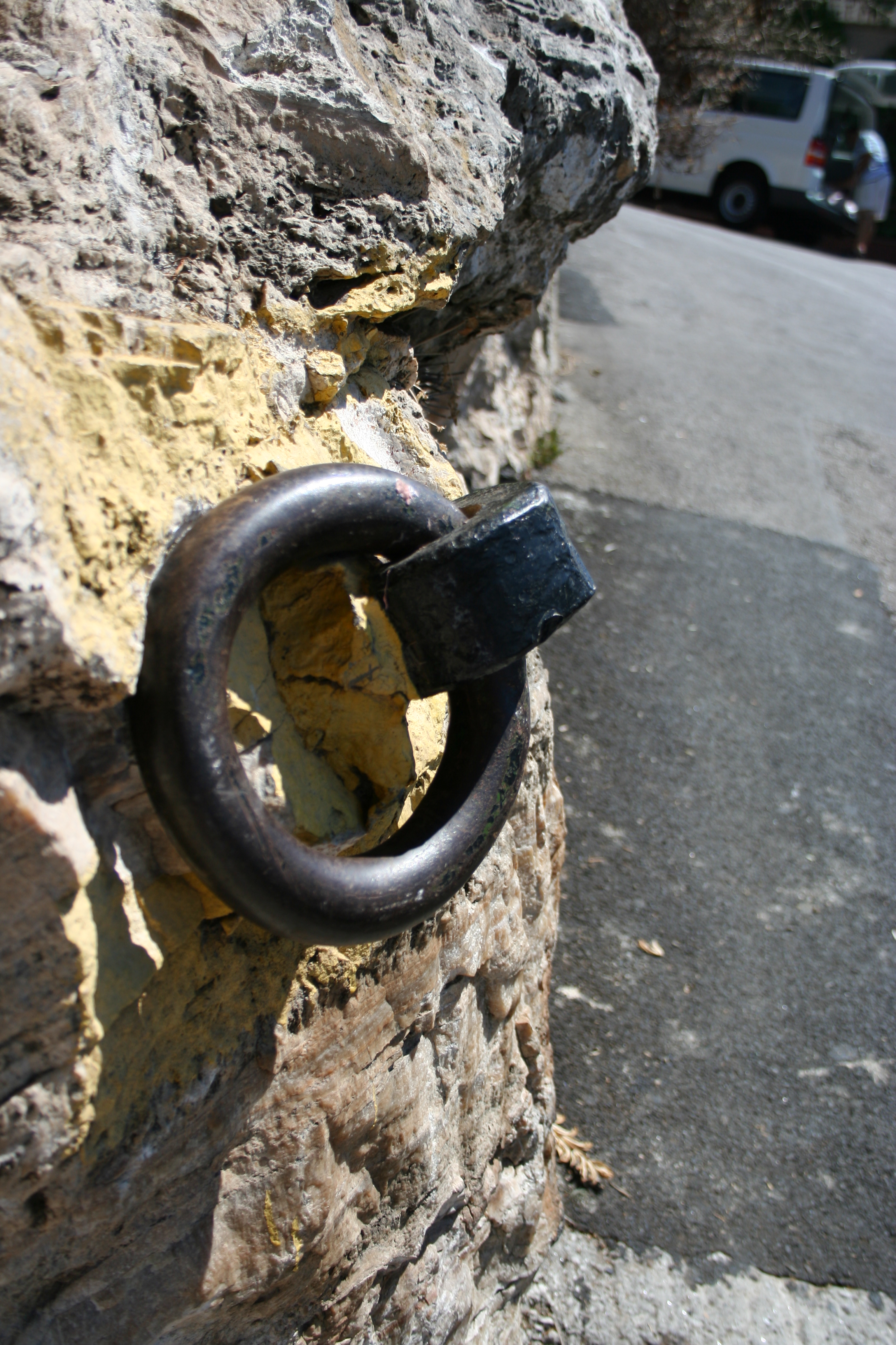 While walking all along these attractions you will see these iron rings sticking out from the rock.  These were used before the road was present (oh my God. What a road it is, if you think coastline driving in California is bad, this will scare you silly. There are turns where the van has to stop and make a three point turn, just to drive down the switchback! Also for the drivers to get licensed to do tours on the rock they have to drive the entire thing backwards! Yikes!) Anyways, these rings were used to hoist things like cannons and supplies from the base of the rock up to the top courtesy of some donkey power. I love old metal. I seriously took 20 pictures of these rings.