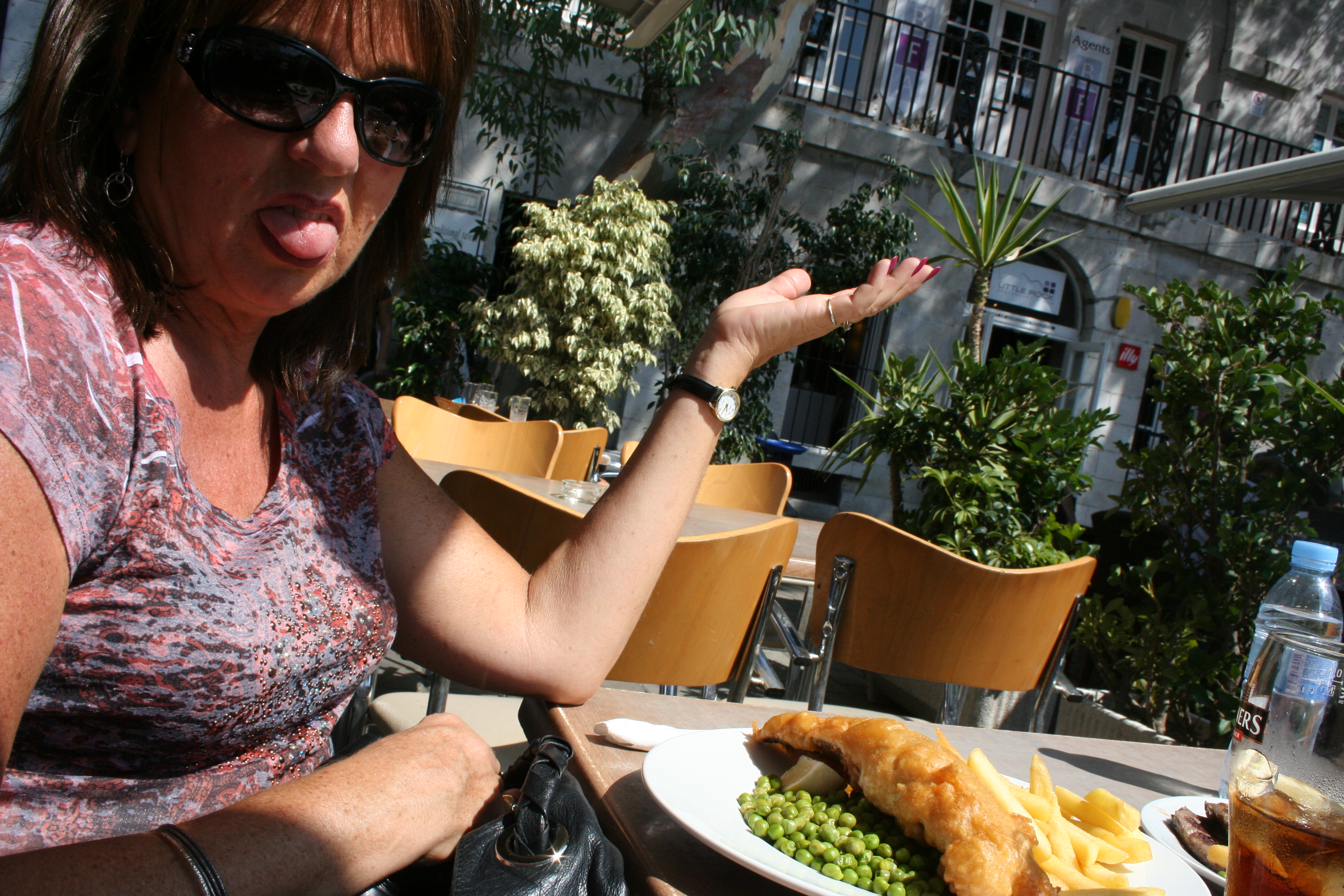 So my mom ordered fish and chips since we were somewhere English.  She was not expecting them to bring her a entire half of a fish.  What is really funny (besides her disgusted look) was that the fish turned out to be excellent and she was SO happy she had ordered it.