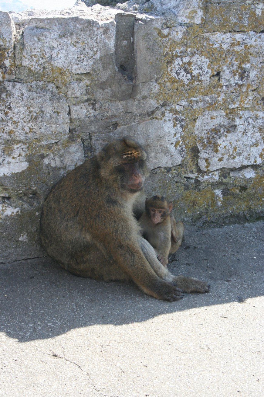The Gibraltar apes are world famous.  It is said that as long as there are apes in Gibraltar the British will hold onto the rock (even if replenishment from some of their African cousins is necessary as was necessary during WWII).  The apes are Barbary macaques and are very bold.  They love to steal from unsuspecting tourists.  We have seen them dig into purses and backpacks, jump into people’s cars to steal food and grab any plastic bag in sight.