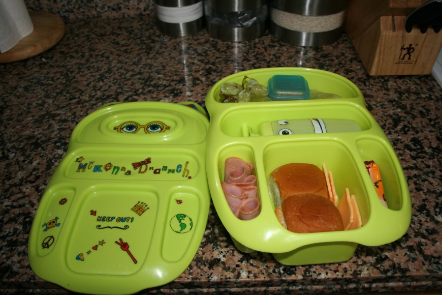 Her favorite part is the stickers that it comes with to customize your lunch box….