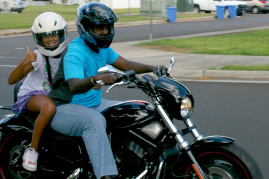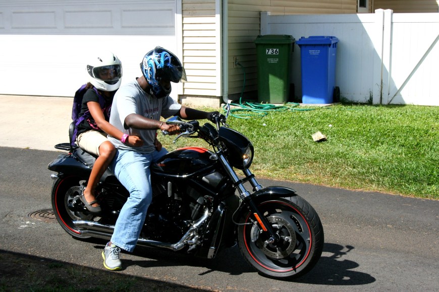 While I am glad Mckenna feels comfortable (a little TOO comfortable, Omar says she forgets to hold on sometimes!) The little one and I will hang out in the garage. At least until Omar is feeling really comfortable riding again and is ready for my extra weight on the back!