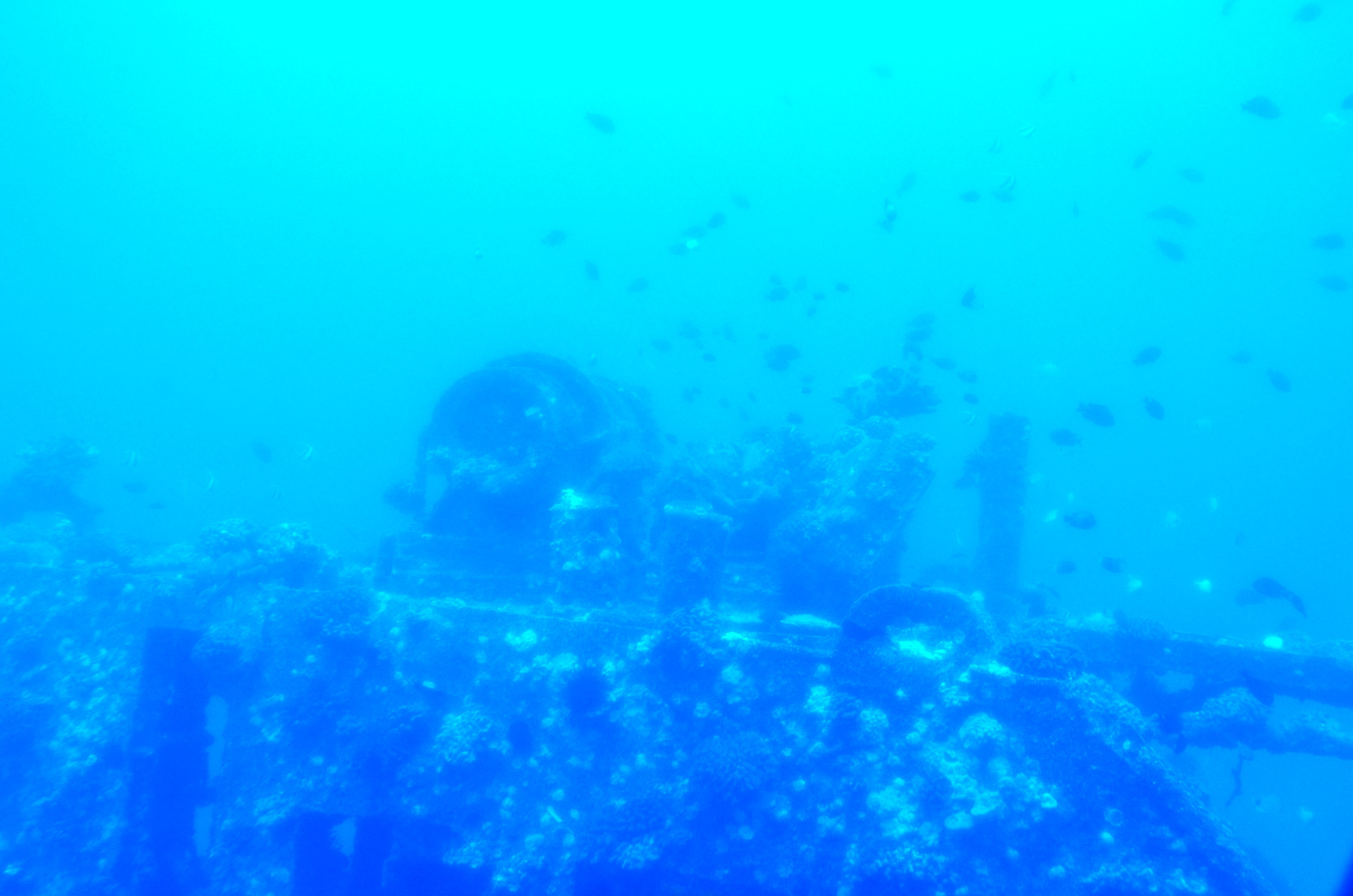 Like I said we were pretty deep and there isn’t a ton of color at that depth. We did see tons of fish. There are natural and man made reefs right off of Waikiki. Quite a few wrecks as well. It’s a pretty popular scuba-diving spot (although I would be nervous diving with all these subs driving by!) If you look closely you can see a sea turtle hanging out on the front of that wreck. It was pretty cool, they passed by everything twice so both sides got to see.