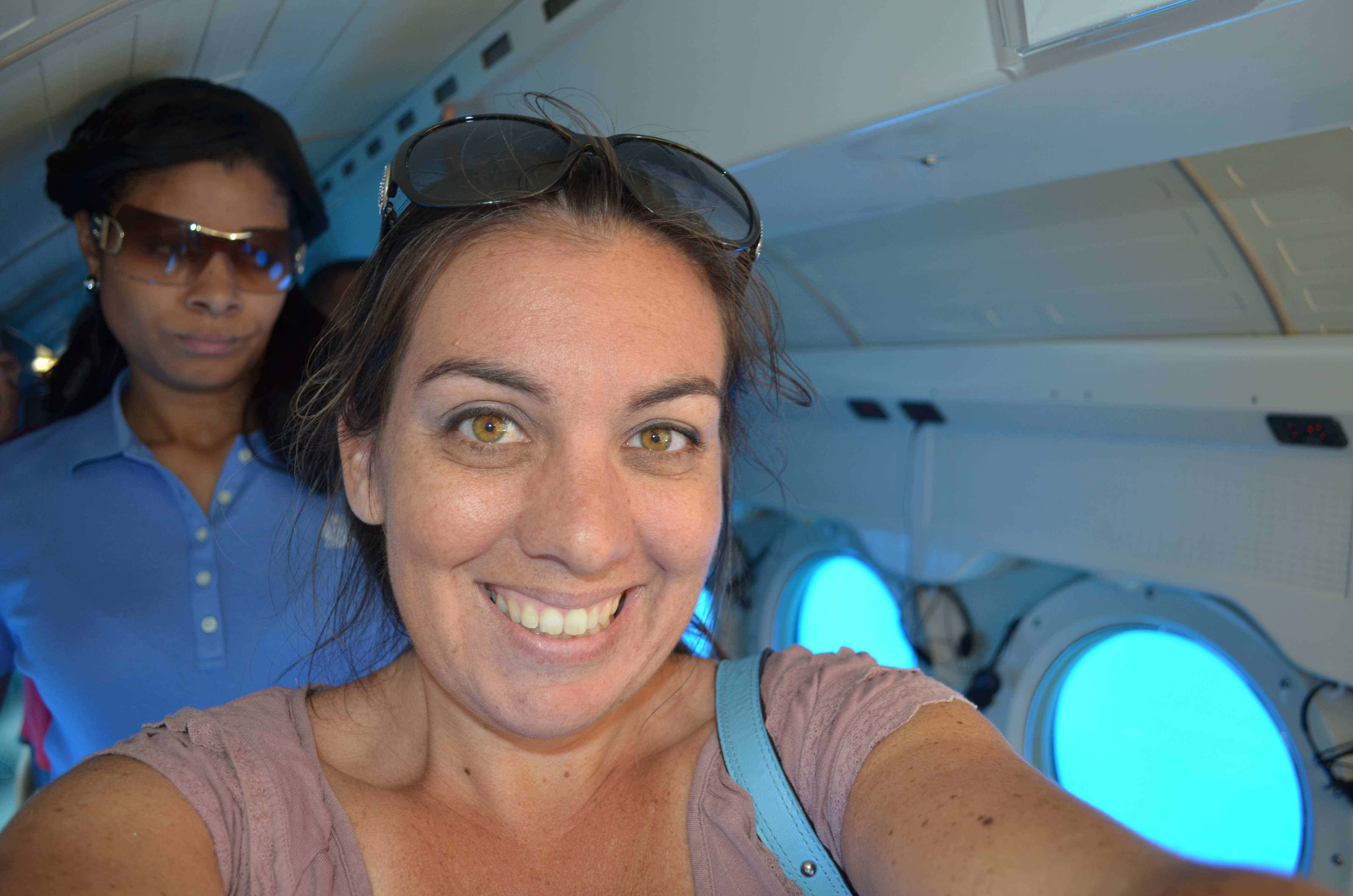 There are two different subs, we were on the smaller (cheaper) version. I think the other one has more room and bigger portholes. I didn’t have any problems with this one. There is a little gauge on the wall that shows how deep we were, we ended up going over 100 feet underwater.
