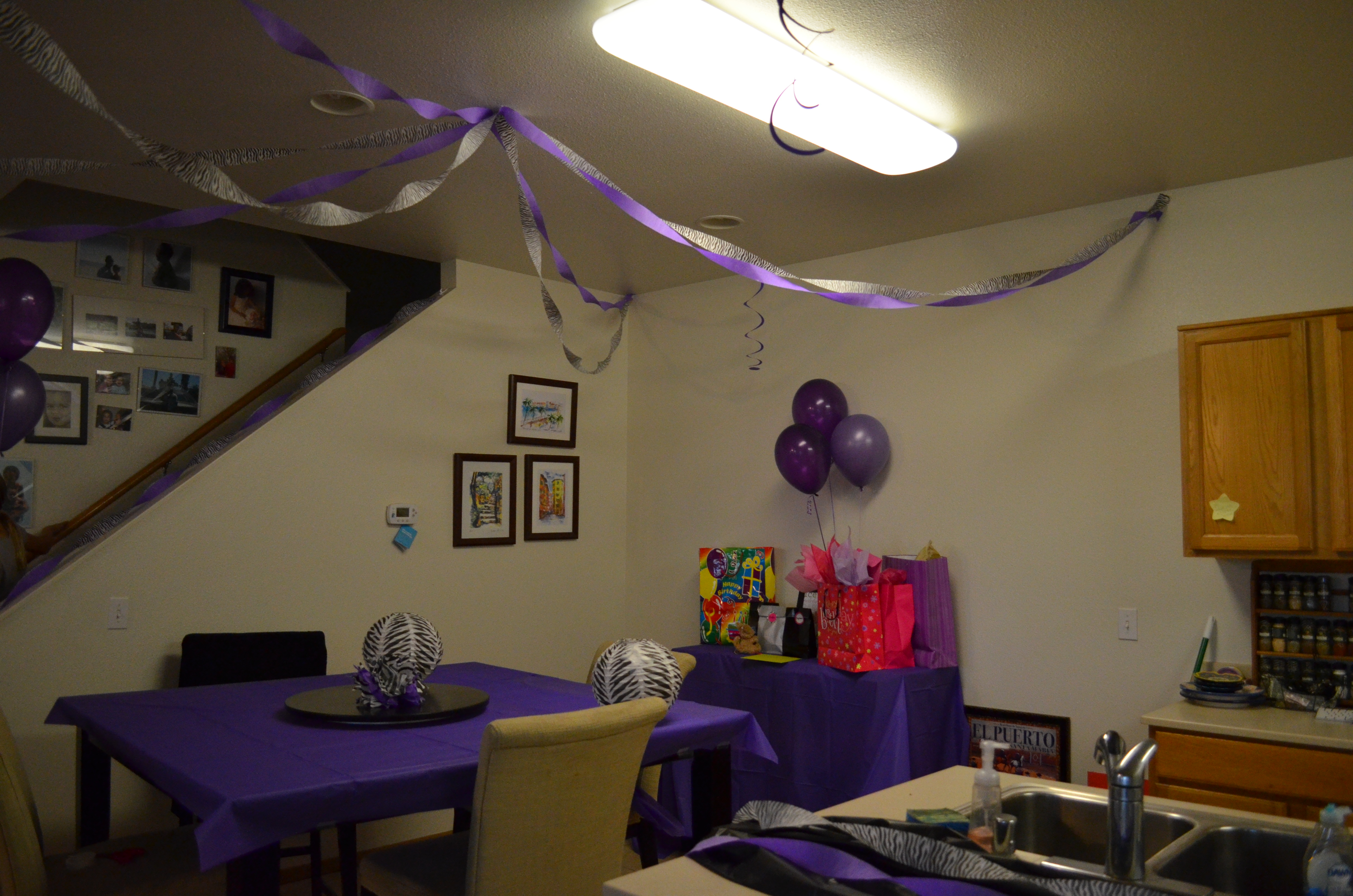 Decorated down to the very last minute but had fun with all of the zebra and purple. I could have spend another $200 at Party City on decorations but we were good with this… I also had a bunch of balloons out front tied to my shepard’s hook that someone stole! Mckenna was so mad because there was a zebra mylar one in there. Who does that?!