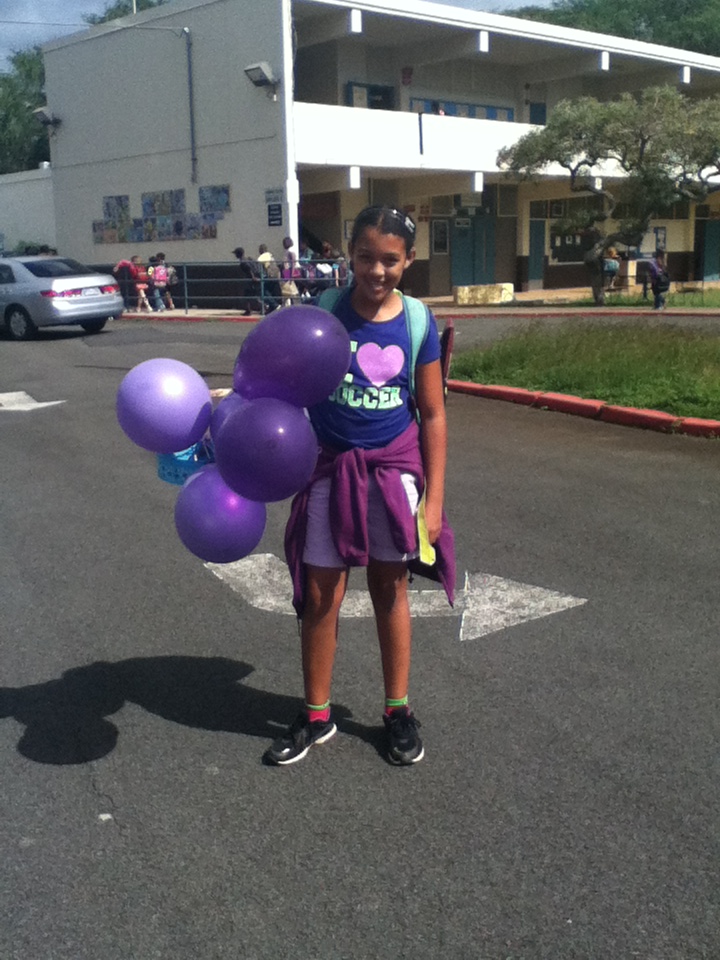 And a special delivery at school of cake pops for her class (purple ones of course!) and a bouquet of balloons (more purple! Are you seeing a theme?)