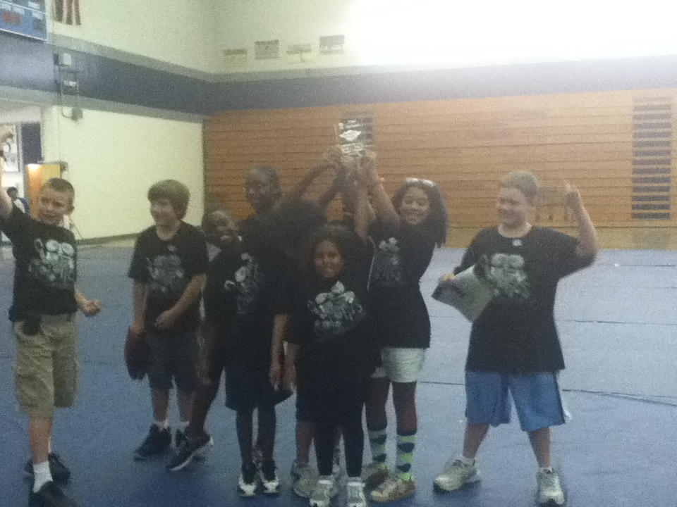 I had to take her to the local high school where the competition was taking place at 7:45am (love waking up early on Saturdays!) dropped her off with her team and then Omar and I had some time to go eat breakfast and he had a soccer game (to WIN, ’cause he’s awesome!). We ended up coming back to her competition around noon, just when the actual competing was going to start.