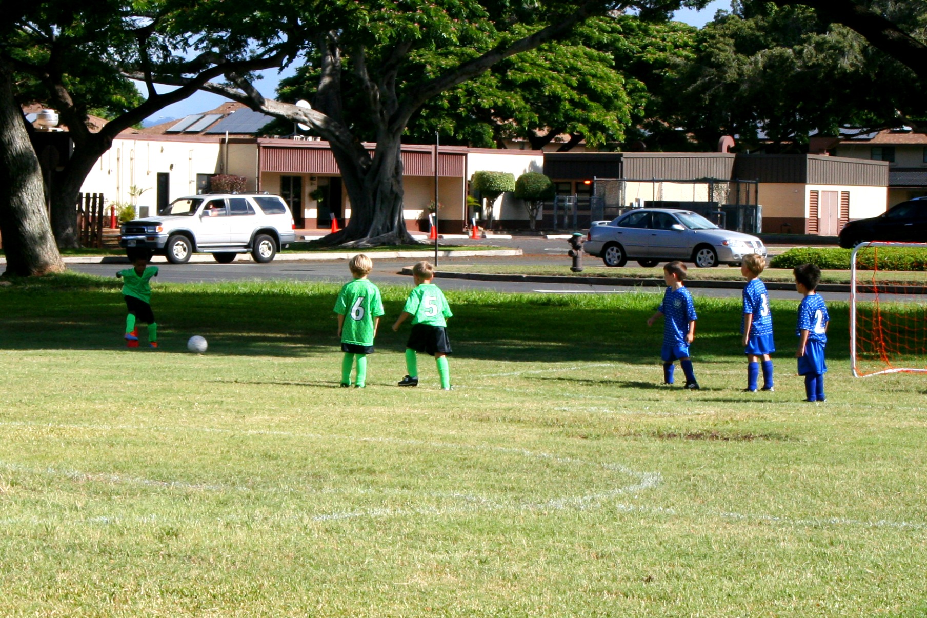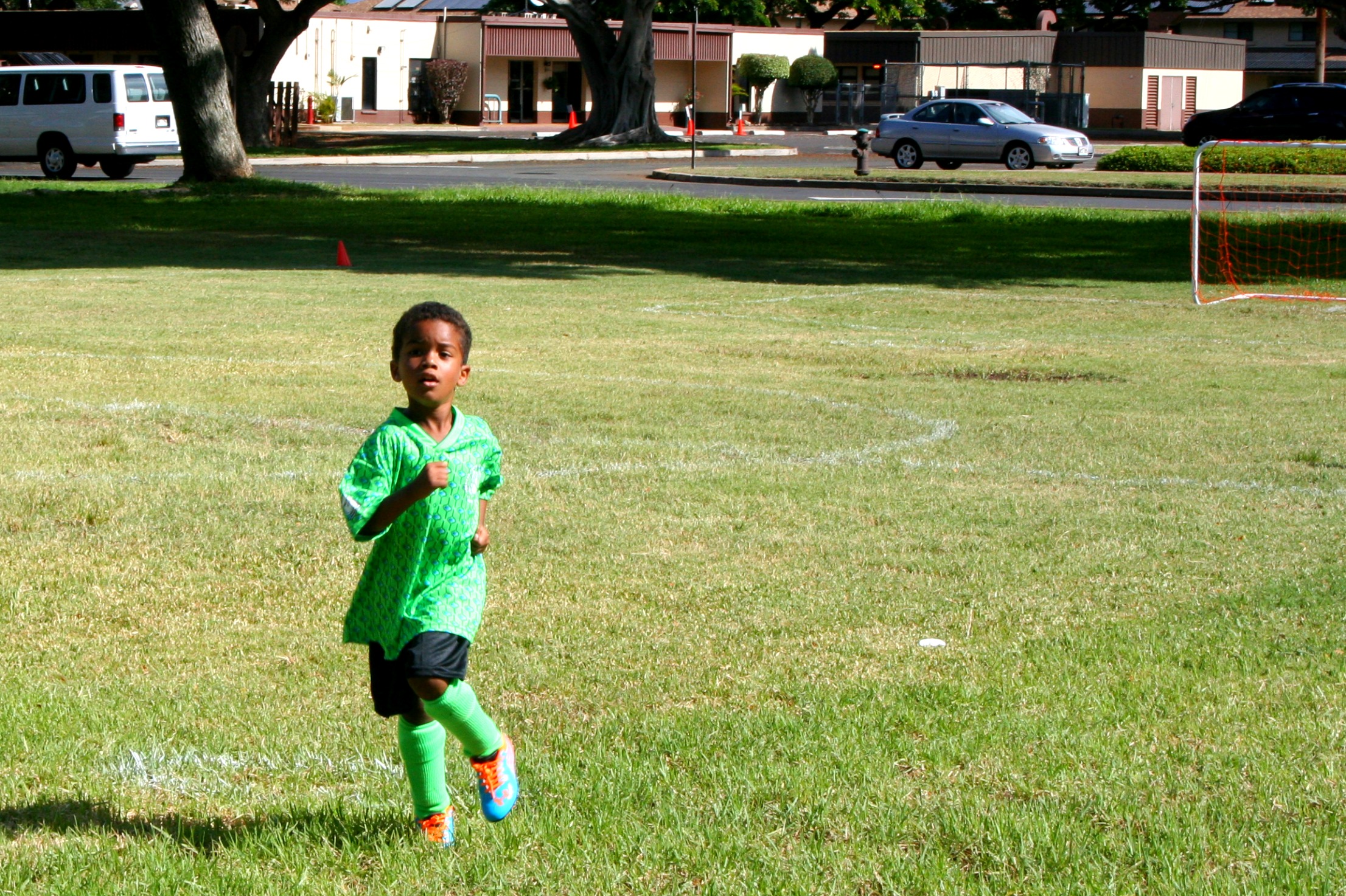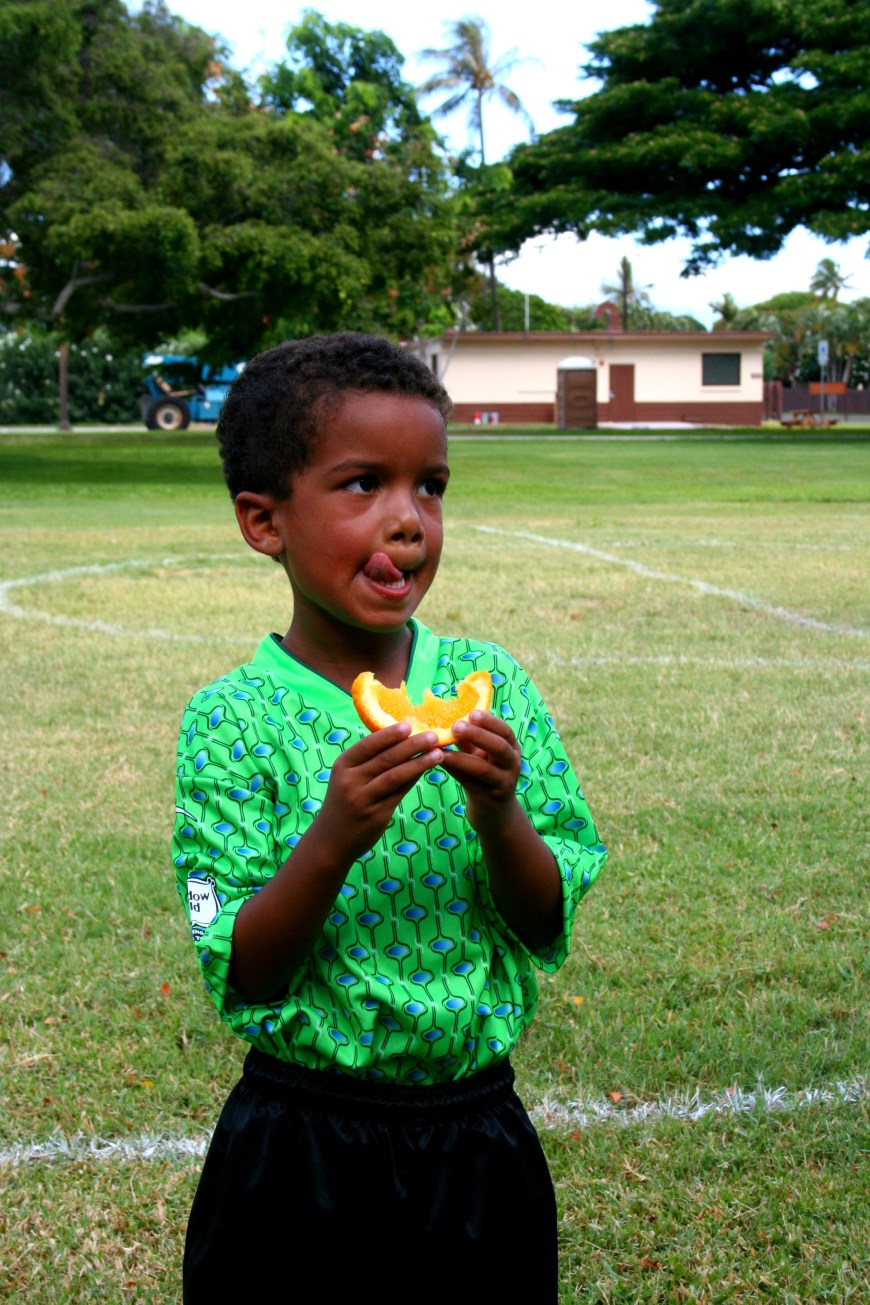 Omar had his first practice today after an afternoon phone call from the coach saying he sent me an email Monday. Uh, no you didn’t! All the way across town in rush hour traffic, kill me. And everyone lives on the same street in this housing area except for us. Weird. I don’t know why they put us on this team. Coach seems nice, only one other mom was there and she was chatty! Like REALLY chatty! It was fine, better than being ignored. (Just because I can’t help myself… I am the only person who thinks it’s weird to wear nylons with a sundress on an 80 degree day in Hawaii? No I’m not the only one? Good, cause that was… odd.) She invited us to a party at Chuck E. Cheese so Omar will like that, get to know his team a little better. Thankfully the ride home is opposite traffic and is very fast!